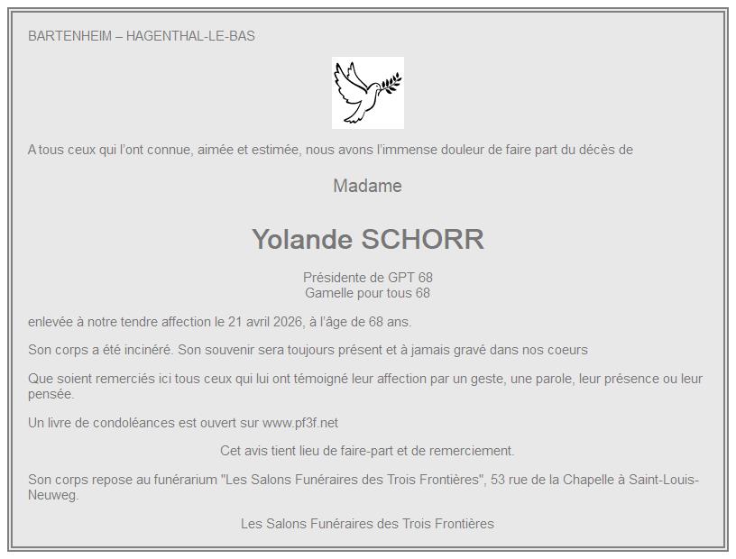 Décédée à Mulhouse (68100, France) le mardi 21 avril 2026 à l'âge de 68 ans